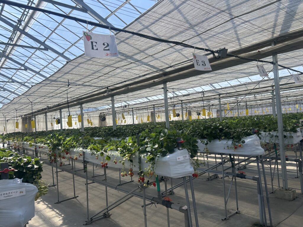温度・湿度管理されたハウス内でいちご狩りが楽しめる直売所です。