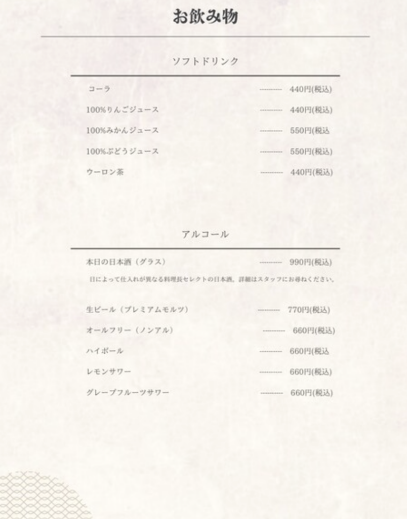 | 支払い方法 | 現金可、カード可 電子マネー不可 QRコード決済不可 |