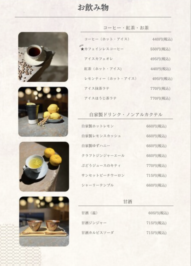 | 営業時間 | 月、水~日、祝日: 11:00~18:00 (料理L.O. 17:00 ドリンクL.O. 17:00) 火曜日 定休日 |