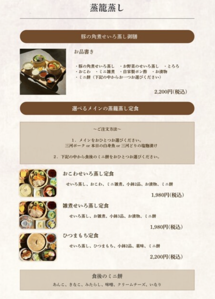 今回注文した商品は、「おこわせいろ蒸し定食」