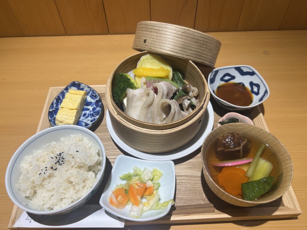 せいろ蒸しの中には、数種類の温野菜と三河ポークが入っていました!